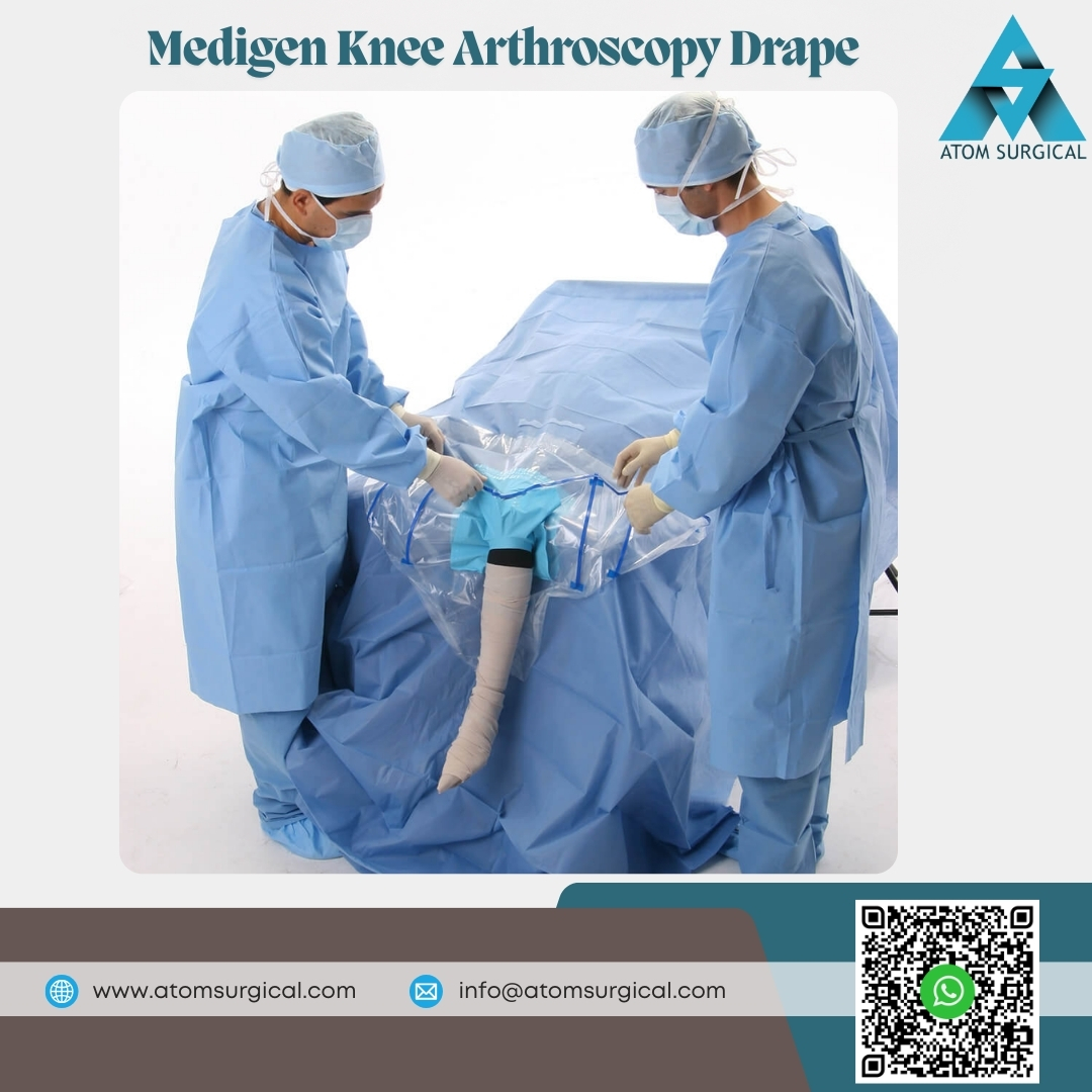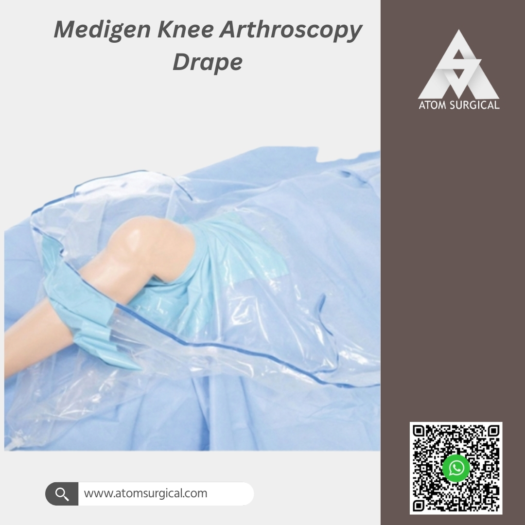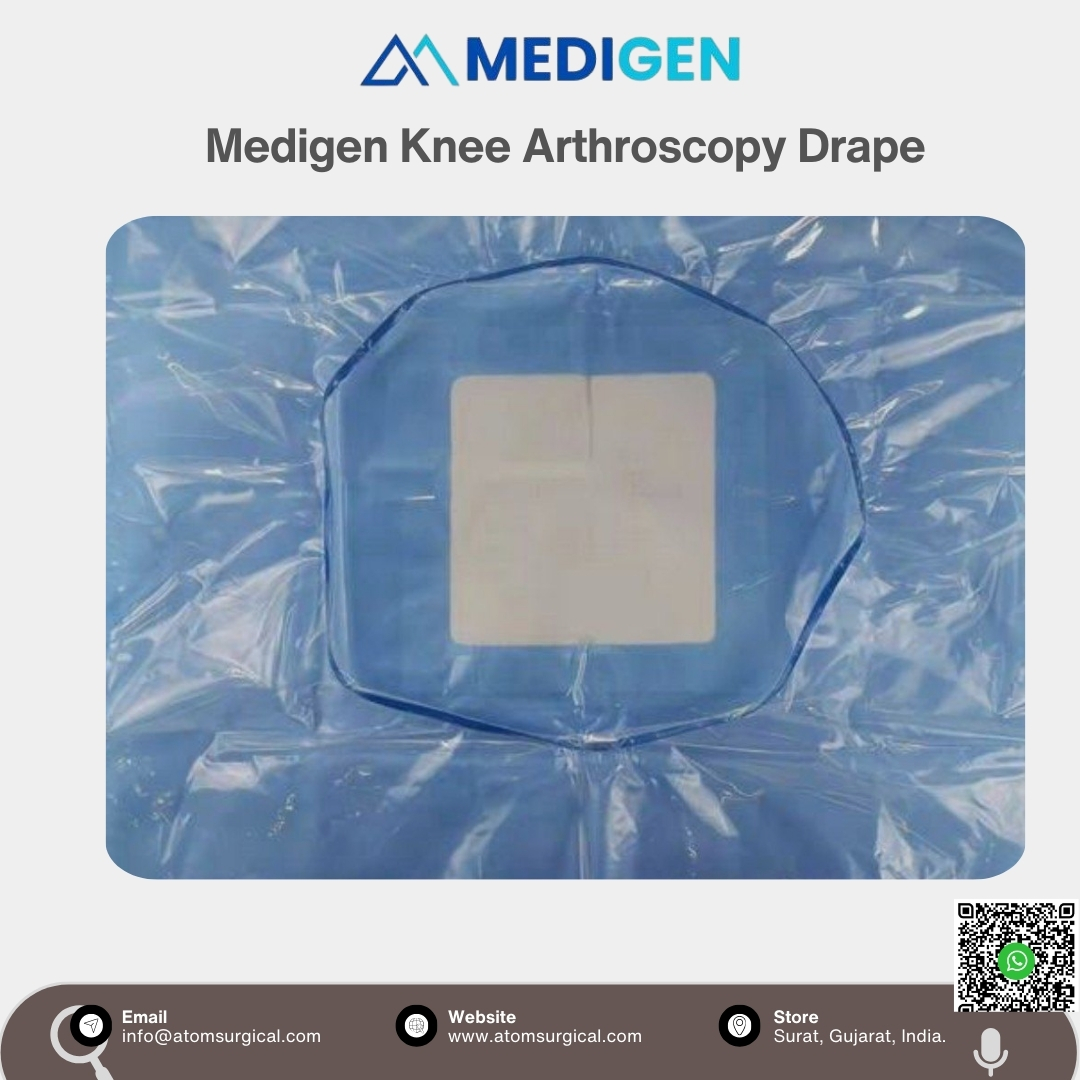The Medigen Knee Arthroscopy Drape is a single-use, EO-sterilized orthopaedic drape specifically designed for diagnostic and therapeutic knee arthroscopy procedures.