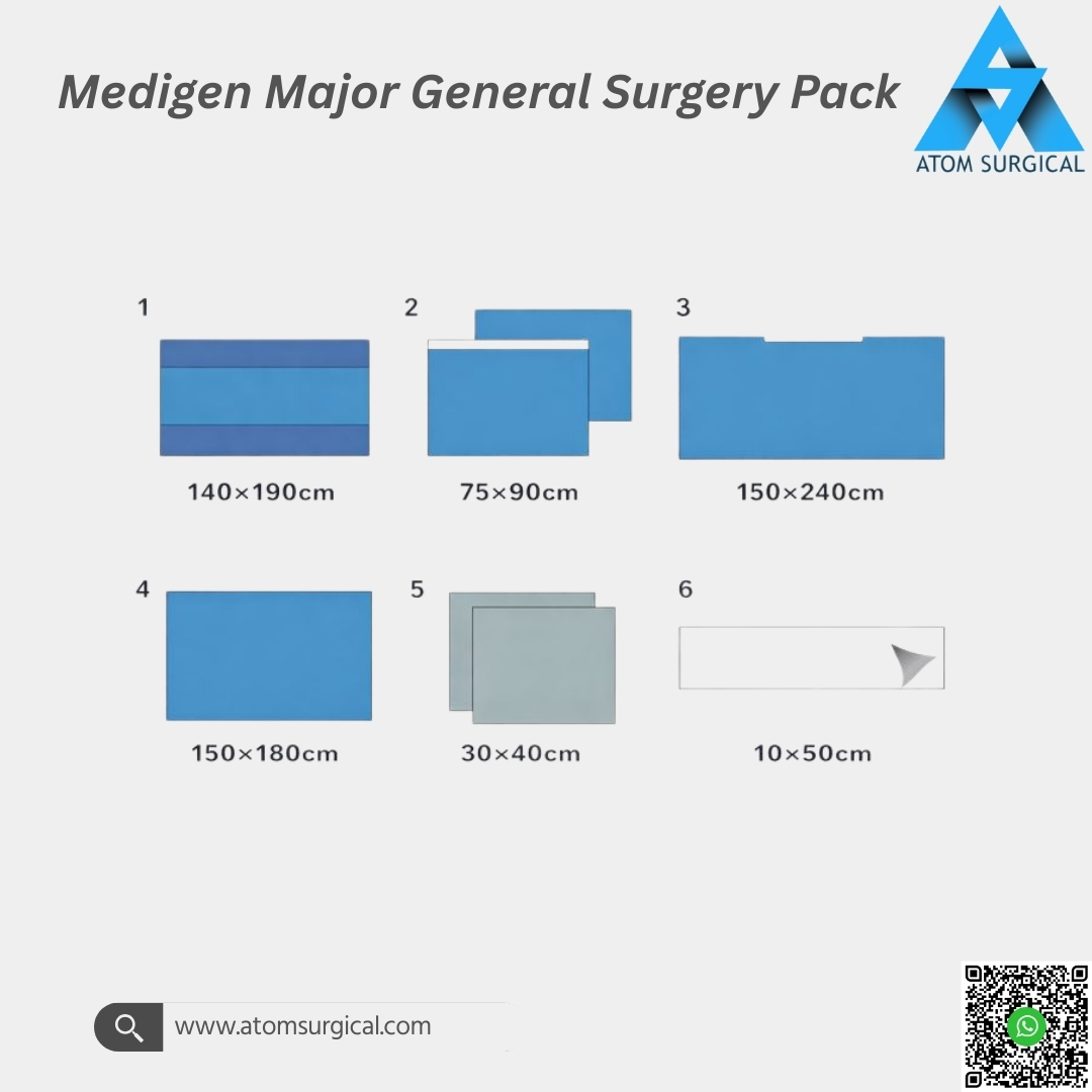 The Medigen Major General Surgery Pack is a comprehensive sterile disposable surgical pack developed for major general surgeries where extended operating time, heavy fluid exposure, and maximum infection control are critical.
