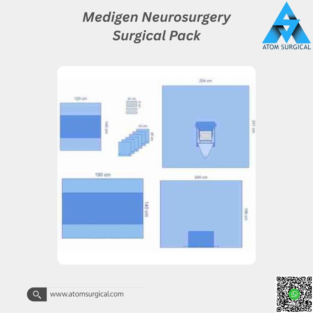 The Medigen Neurosurgery Surgical Pack is a premium disposable sterile draping system designed specifically for cranial, spinal, and neurological surgical procedures. Each pack is carefully assembled to provide extensive patient coverage, effective fluid control, and a reliable sterile barrier throughout complex and long-duration neurosurgeries.