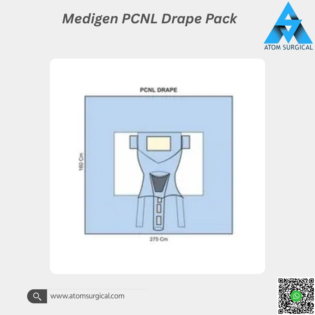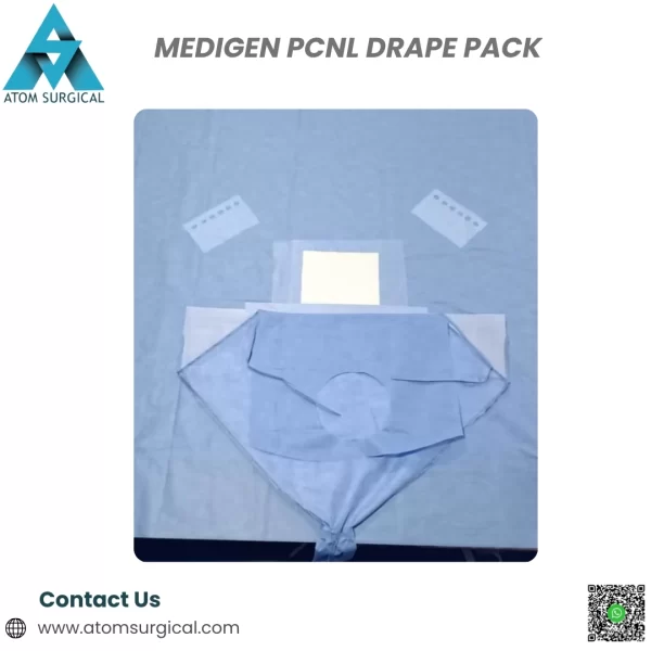 The Medigen PCNL Drape Pack is a premium disposable sterile draping system designed specifically for Percutaneous Nephrolithotomy (PCNL) and complex renal stone procedures. These surgeries require effective fluid management, wide patient coverage, and dependable barrier protection due to prolonged operative time and high irrigation volume.
