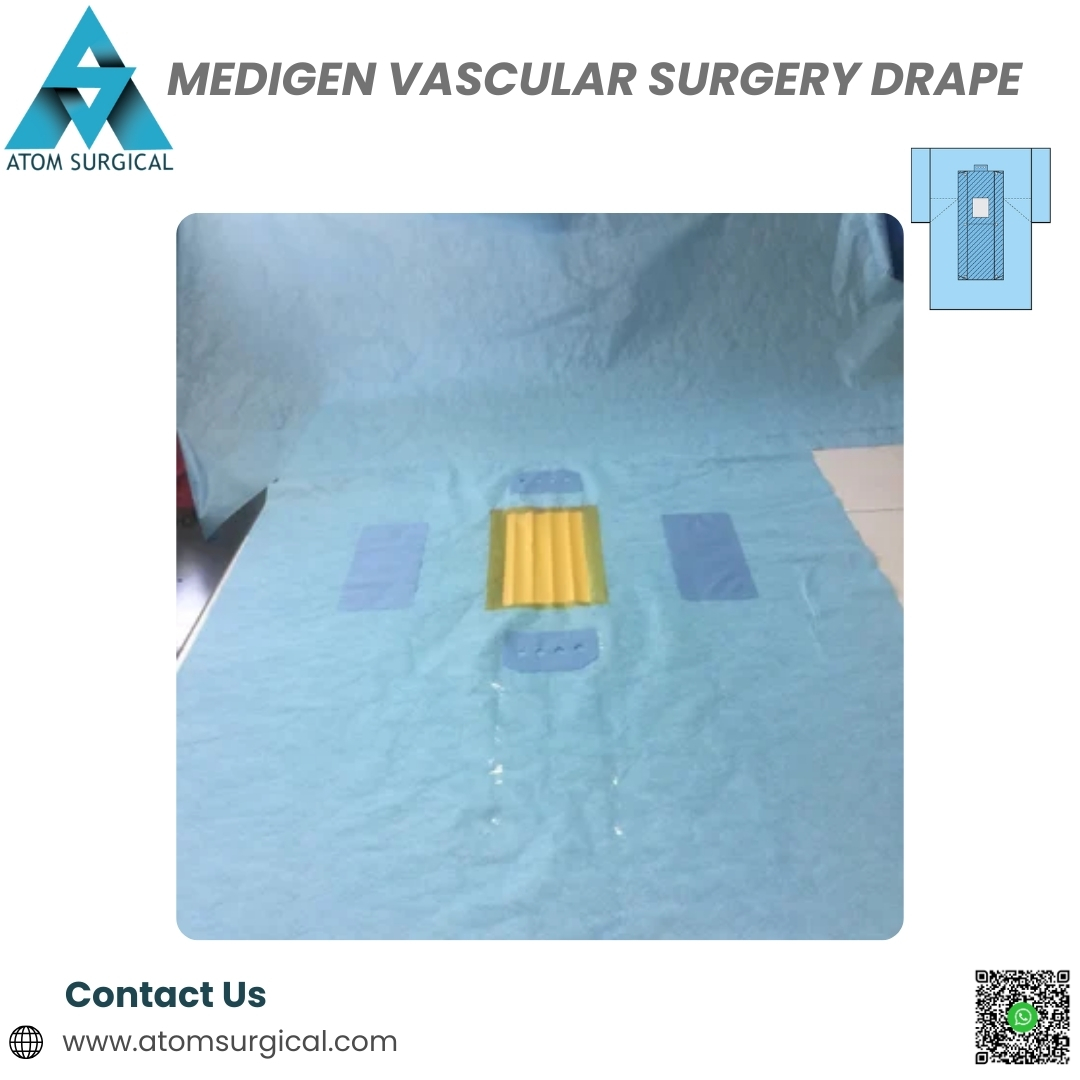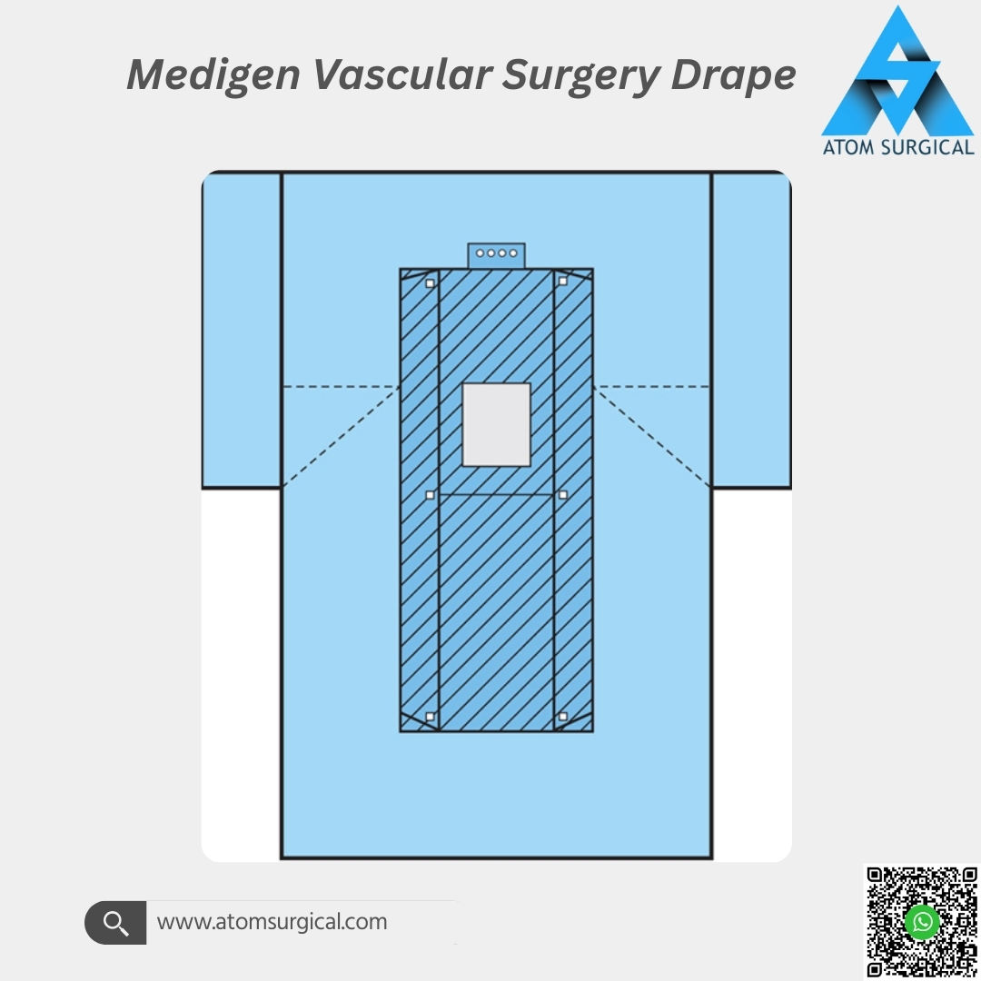 The Medigen Vascular Surgery Drape is a premium disposable sterile draping solution designed for vascular and endovascular surgical procedures. It provides effective barrier protection against fluids and microorganisms while allowing controlled access to the operative site.