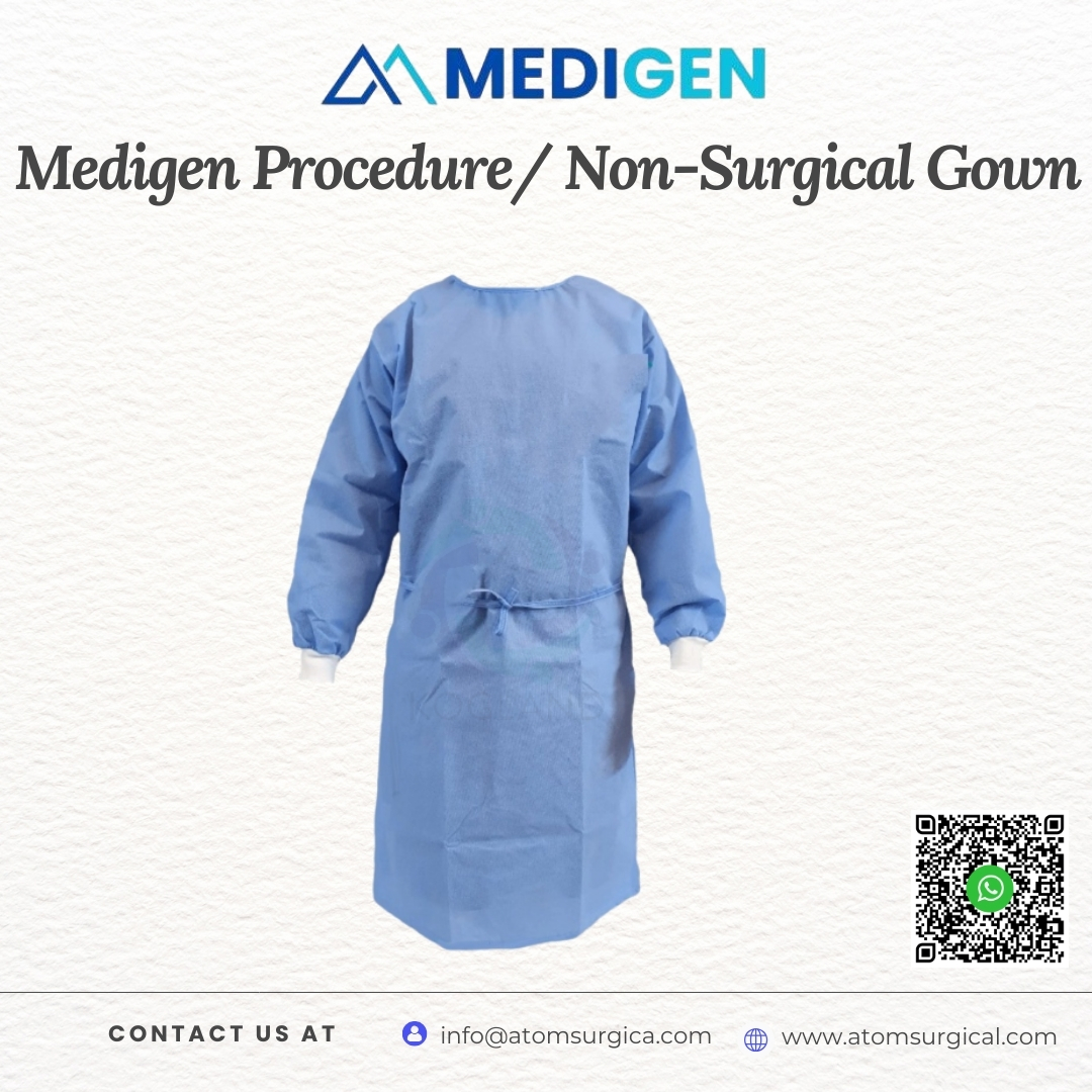 Atom Surgical is a trusted manufacturer and exporter of procedure gowns and non-surgical medical gowns under the Medigen brand. We supply high-volume disposable gowns to healthcare providers and distributors across Africa, GCC, South America, Maldives, Myanmar, Bhutan, and Asian countries.